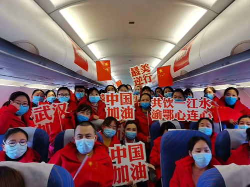國藥重慶西南鋁醫(yī)院胡曉鳴響應(yīng)號(hào)召,加入重慶第十四批支援武漢醫(yī)療隊(duì),下午出發(fā)前一刻飛機(jī)上的合影。