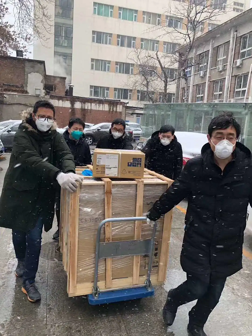 2月14日,國藥器械天津公司的同事們眾志成城,冒著風(fēng)雪給天津市海河醫(yī)院送防疫設(shè)備,保障新冠病人急需。