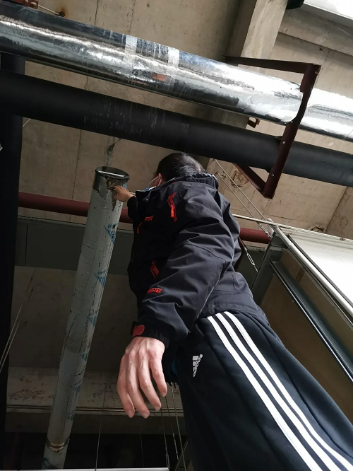 國藥中國生物武漢公司工程部楊秀勇到車間夾層檢查注射用水管道運(yùn)行情況。