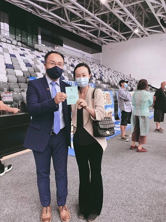 接種現(xiàn)場秩序井然,在毛中國同胞們嚴(yán)格遵守防疫規(guī)定,全程佩戴口罩,保持社交距離,在醫(yī)務(wù)人員和領(lǐng)保志愿者的引導(dǎo)下,經(jīng)過測量體溫、核對信息、健康詢問、了解注意事項(xiàng)等流程后依次接種,隨后進(jìn)行半小時(shí)的留觀。在拿到接種證書后,眾人紛紛在“春苗行動(dòng)”條幅前合影留念,感謝祖國對海外游子的關(guān)愛,為中國政府的“春苗行動(dòng)”點(diǎn)贊。