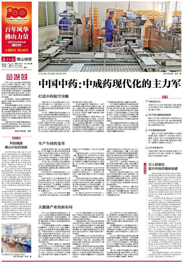 進(jìn)入21世紀(jì)之后,佛山對中醫(yī)藥的重視也是有增無減。早在2006年,佛山市委、市政府就召開佛山市加快中醫(yī)藥發(fā)展動員大會,明確提出全面加快佛山中醫(yī)藥事業(yè)、產(chǎn)業(yè)和文化建設(shè)發(fā)展。去年,佛山再次召開中醫(yī)藥大會,強(qiáng)調(diào)要促進(jìn)佛山中醫(yī)藥傳承創(chuàng)新,加快建設(shè)全國中醫(yī)藥強(qiáng)市。今年5月,佛山“十四五”規(guī)劃綱要提出,要大力發(fā)展嶺南中藥、中藥新藥、現(xiàn)代新型中藥的研發(fā)與產(chǎn)業(yè)化。